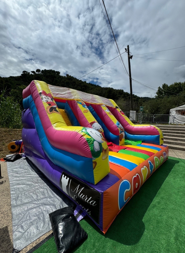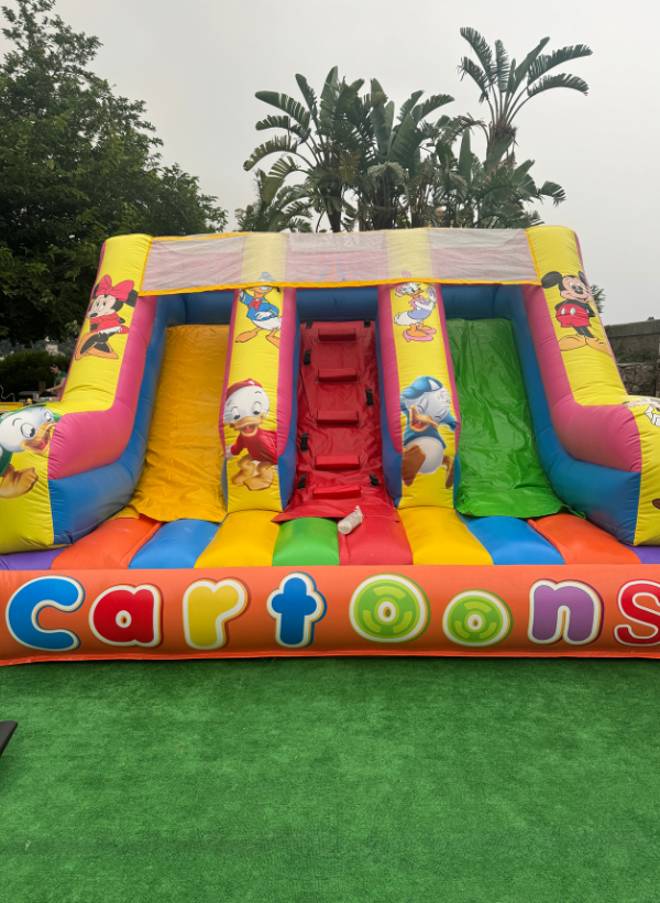 Avec Murta Events, vous pouvez louer votre structure gonflable pas chère : LE CARTOON DOUBLE SLIDE dans les Alpes-Maritimes, le Var et Monaco.